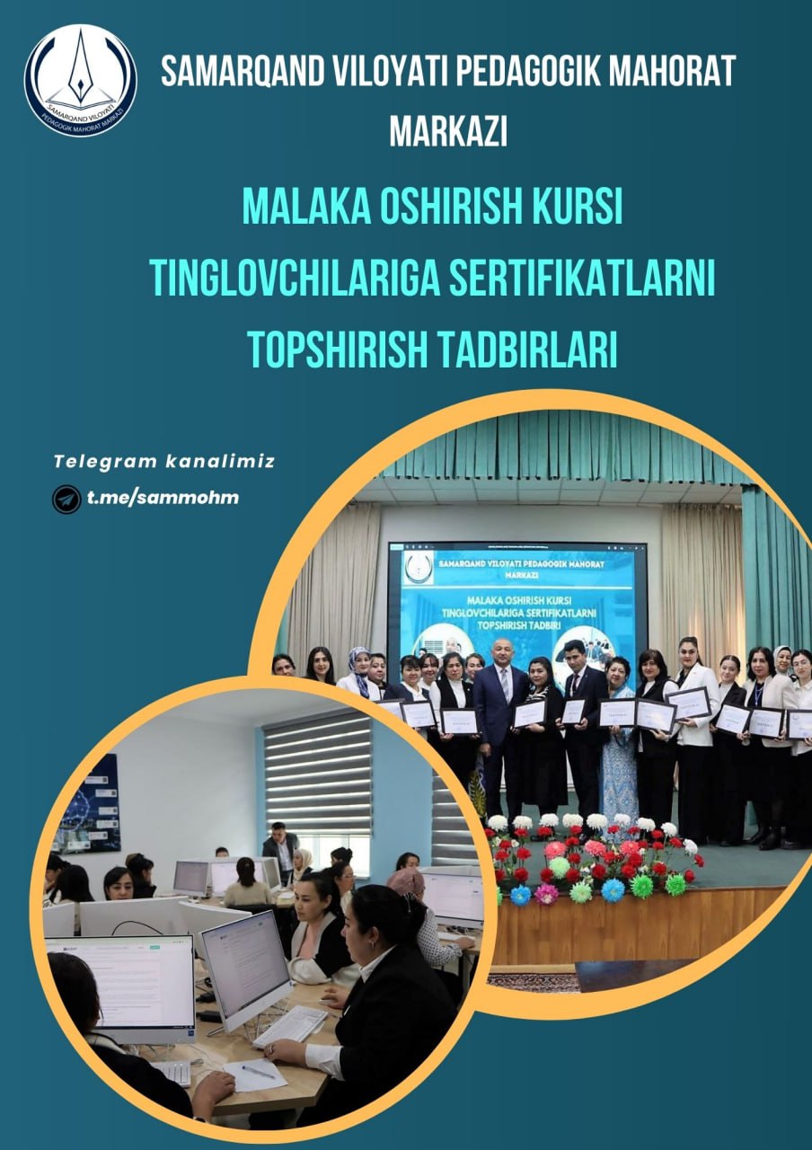 Samarqand viloyati pedagogik mahorat markazida malaka oshirish kursi tinglovchilariga sertifikatlarni topshirish tadbirlari tashkil qilinadi
