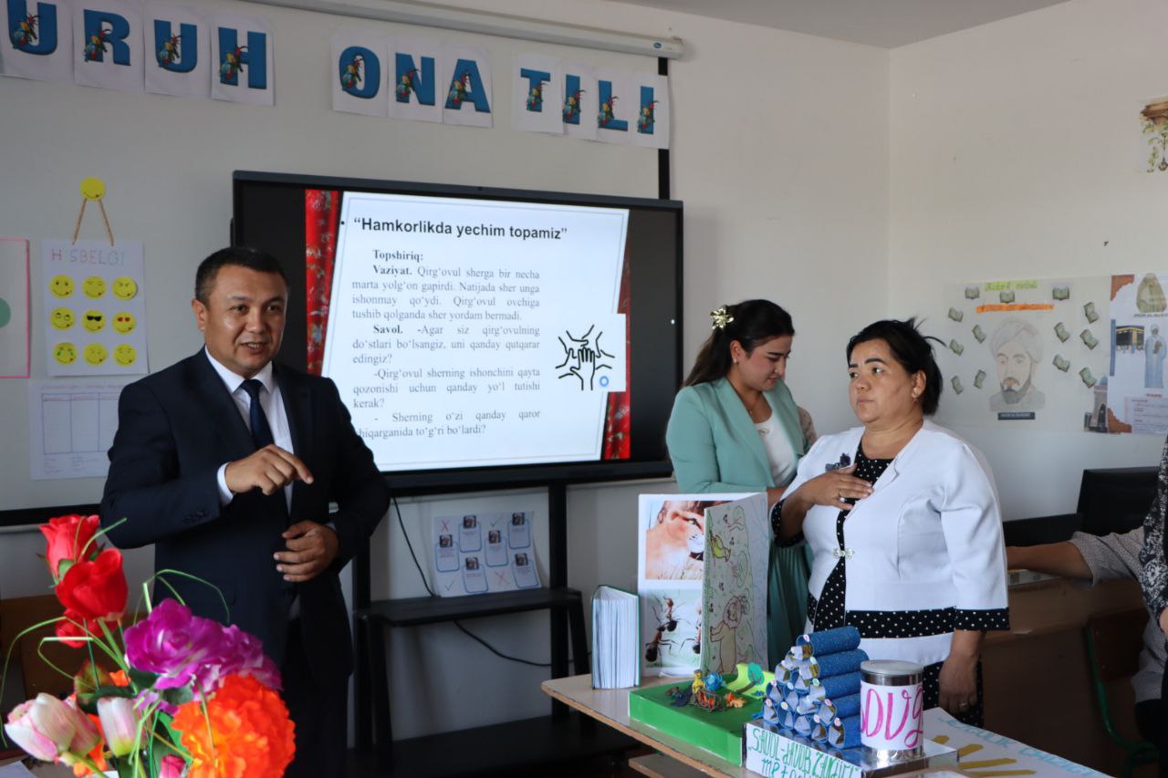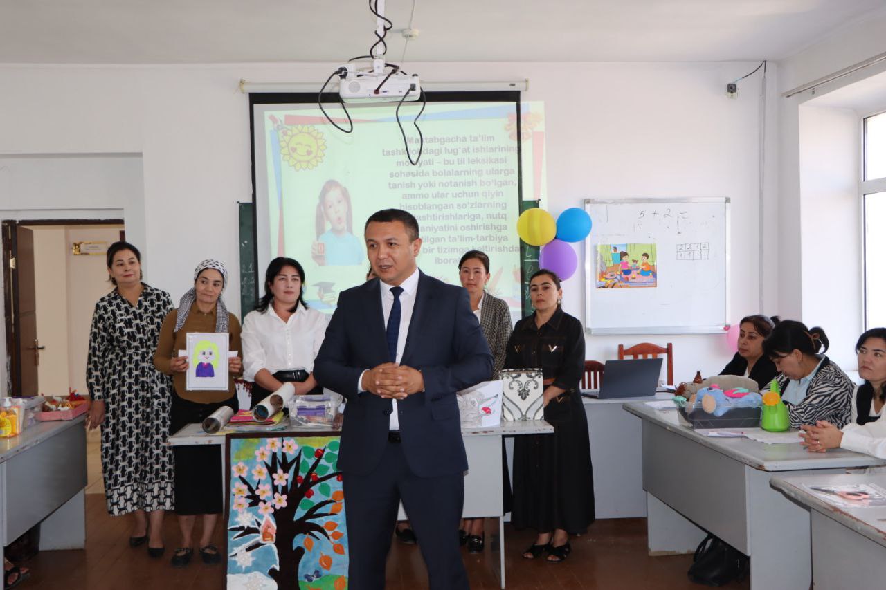 Taqdimot tadbirlarida Samarqand viloyati Pedagogik mahorat markazi direktori Anvar Sobirov ishtirok etmoqda.