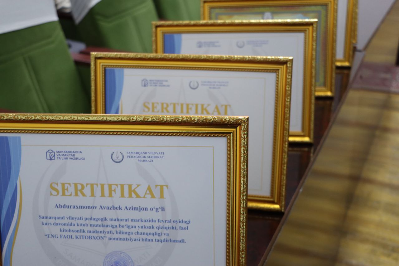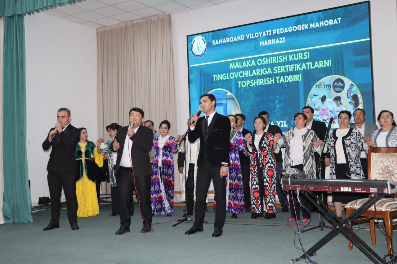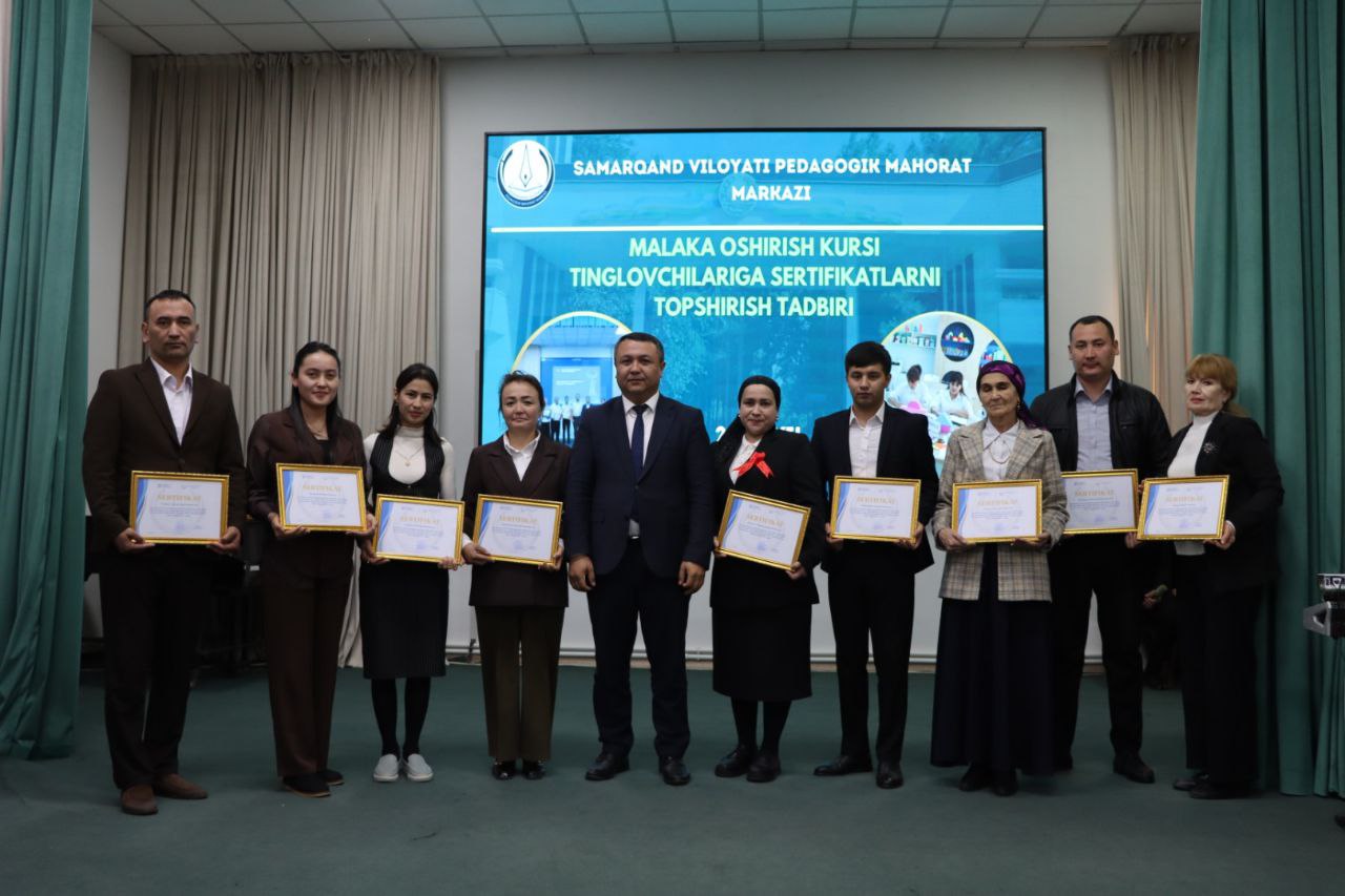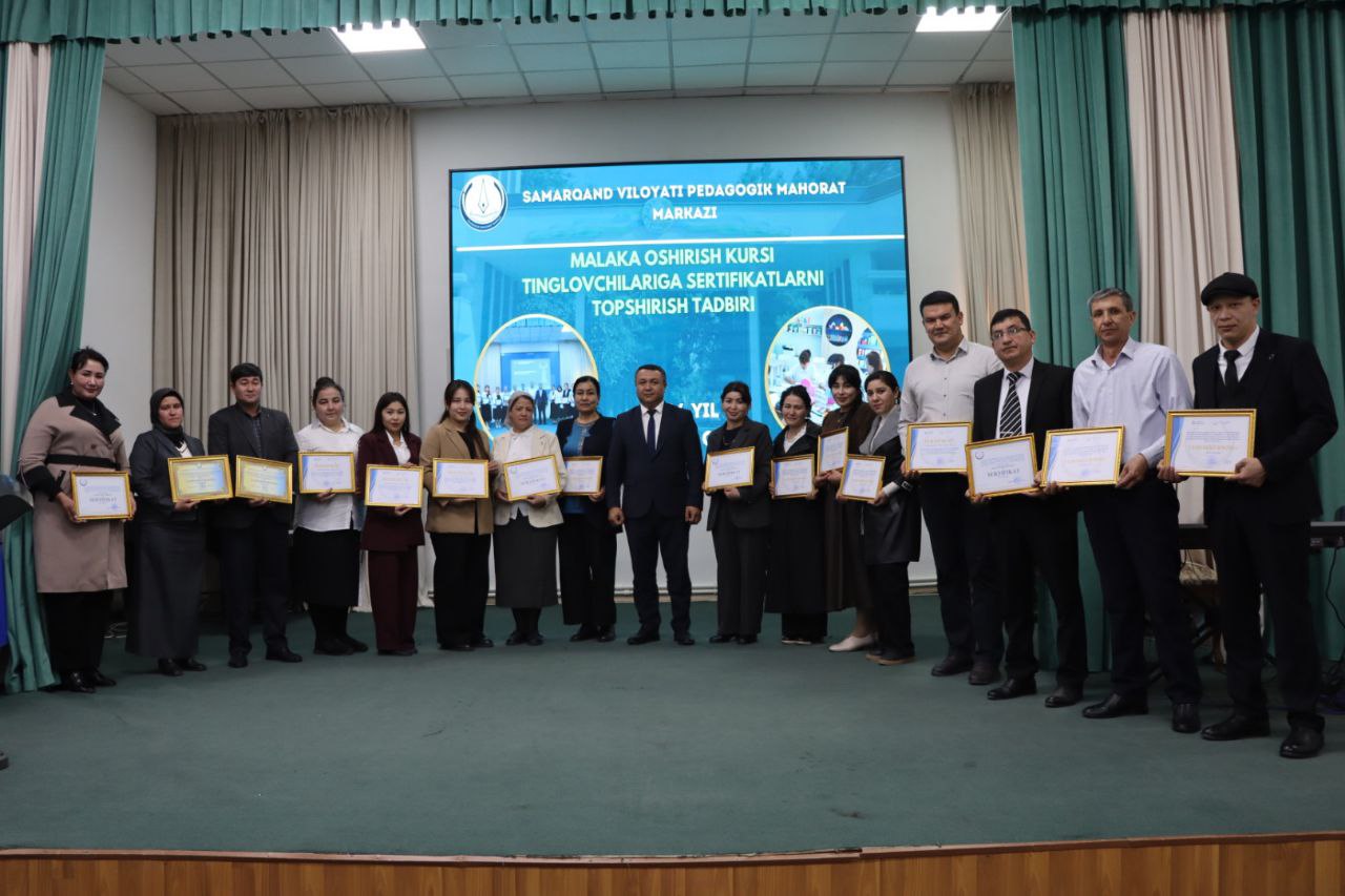 Samarqand viloyati Pedagogik mahorat markazi faollar zalida malaka oshirish kursi tinglovchilariga sertifikatlar topshirish marosimi bo‘lib o‘tdi.