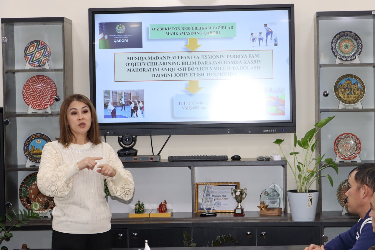 tomonidan jismoniy tarbiya fanidagi yangiliklar, sertifikatlash tizimi va kasbiy rivojlanish mexanizmlari yuzasidan ma’lumotlar berildi.
