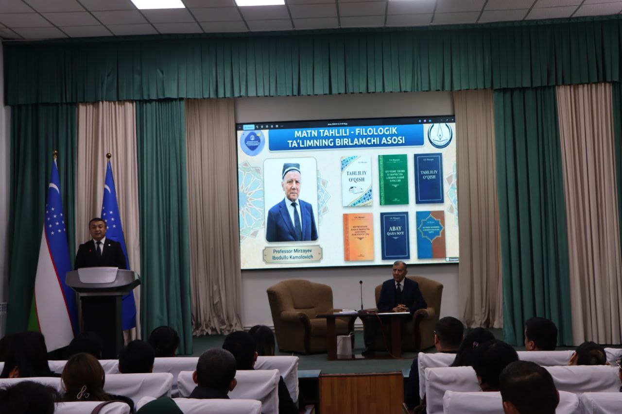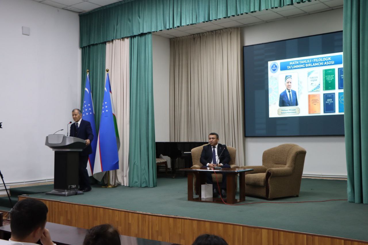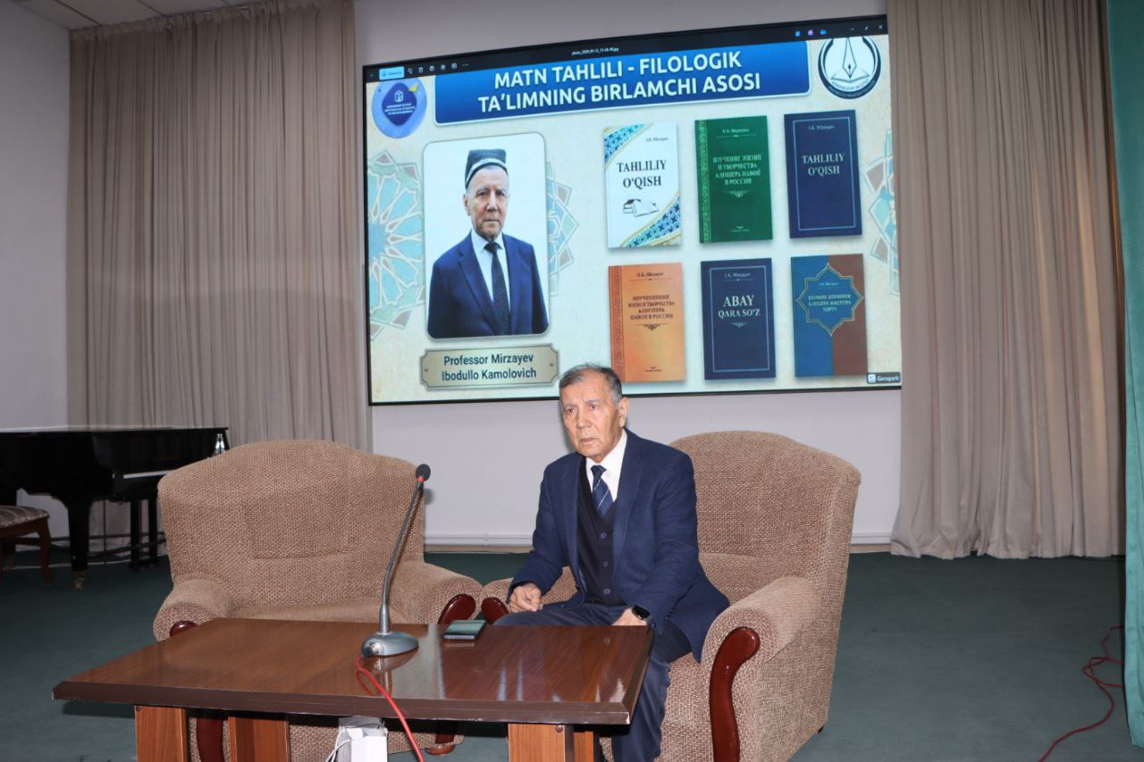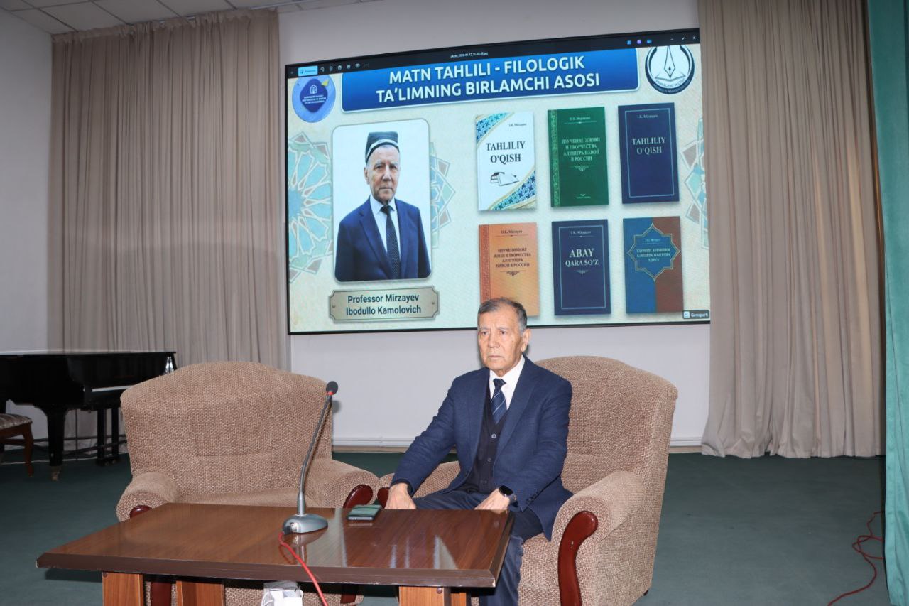 ⌛Shundan so‘ng filologiya fanlari doktori, professor, tilshunos olim va metodist Mirzayev Ibodullo Kamolovich “Tahliliy o‘qish — to‘laqonli filolog tayyorlashning birlamchi vositasi” mavzusida mazmunli ma’ruza qildi.