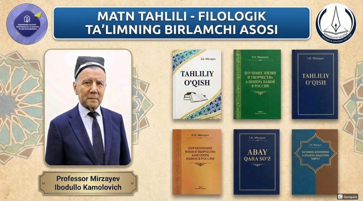 Samarqand viloyati Pedagogik mahorat markazida “Filologik ta’lim — etimologik ta’limdir!” mavzusida filologiya fanlari doktori, professor, tilshunos olim va metodist Mirzayev Ibodullo Kamolovich bilan ijodiy uchrashuv bo‘lib o‘tdi.