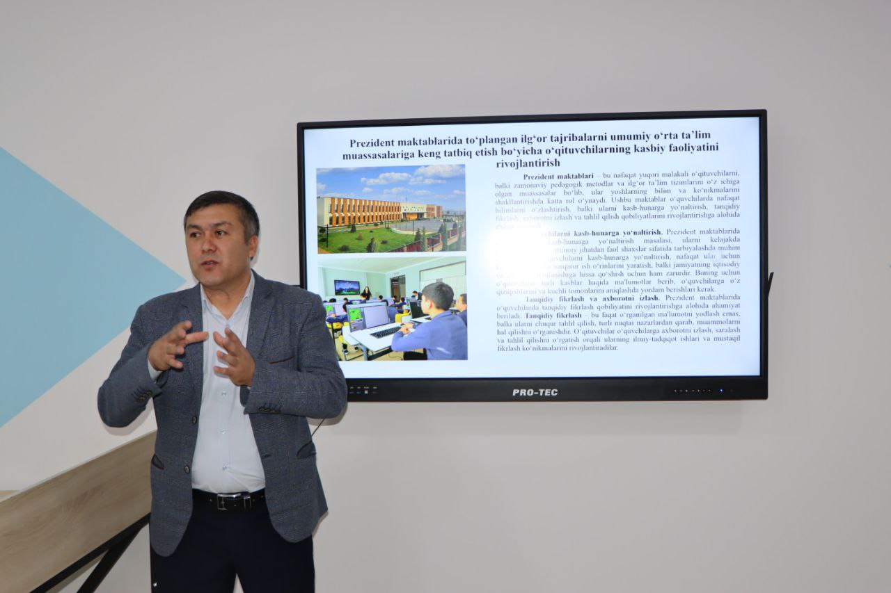 Mashg‘ulotlar jarayonida o‘qituvchilar zamonaviy pedagogik texnologiyalar, innovatsion metodlar va interfaol yondashuvlar orqali ta’lim jarayonini samarali tashkil etish bo‘yicha o‘z bilim va ko‘nikmalarini mustahkamlashmoqda.