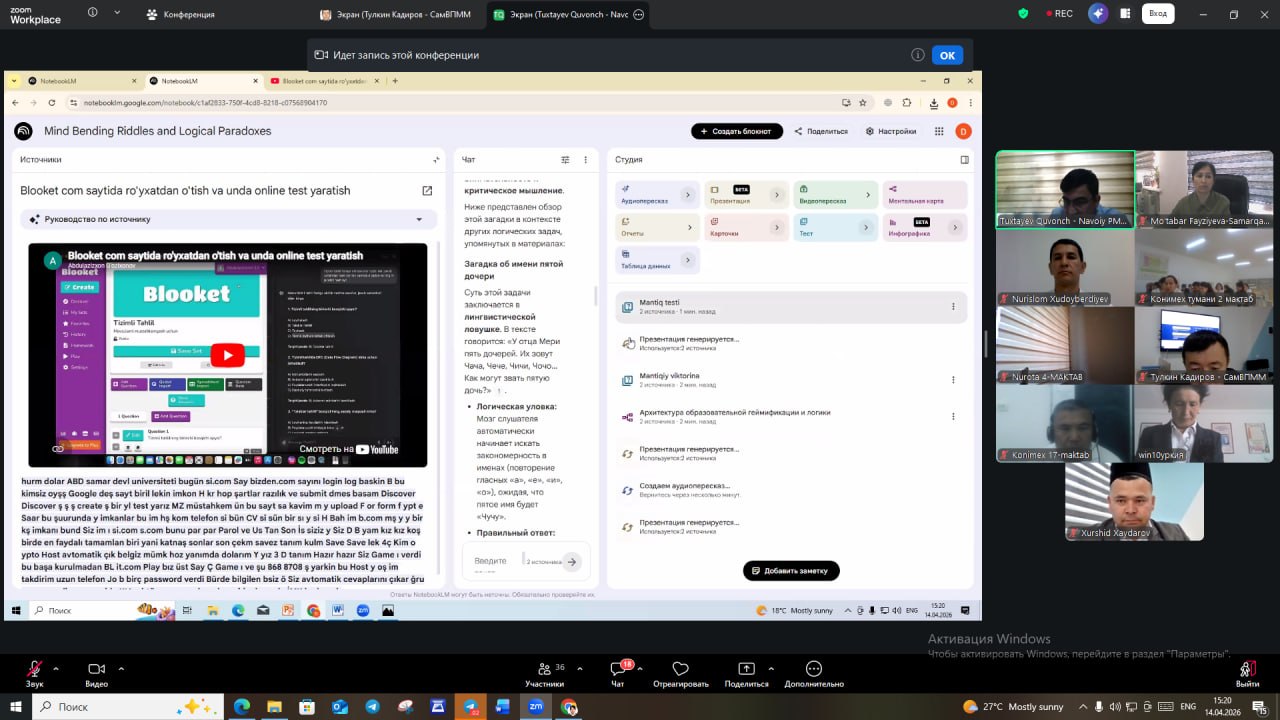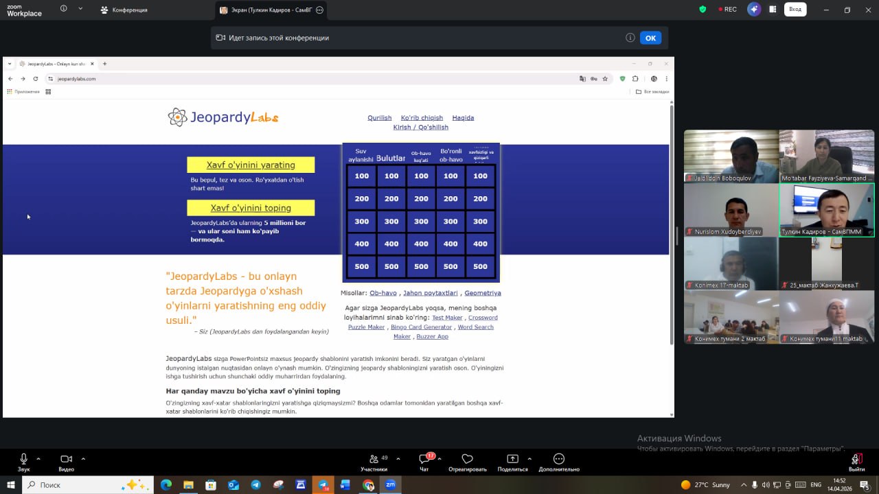 Samarqand viloyati pedagogik mahorat markazi "Aniq va tabiiy fanlar metodikasi" kafedrasi dotsenti, pedagogika fanlari bo‘yicha falsafa doktori Kadirov Tulkin Baxridinovich "Raqamli ta'lim resurslari (www.jeopardylabs.com) dan samarali foydalanish" mavzusida ma'ruza qildi.