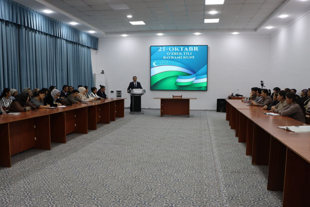 Tadbirda tilimizning davlat tili sifatidagi ahamiyati, uning rivojlanishi va yosh avlod orasida milliy tilga bo‘lgan hurmatni oshirish masalalari muhokama qilindi. Shuningdek, davra suhbati davomida O‘zbek tilining zamonaviy taraqqiyoti, uning ta’lim tizimidagi roli va davlat tilini rivojlantirish bo‘yicha yangi tashabbuslar haqida fikr almashildi.