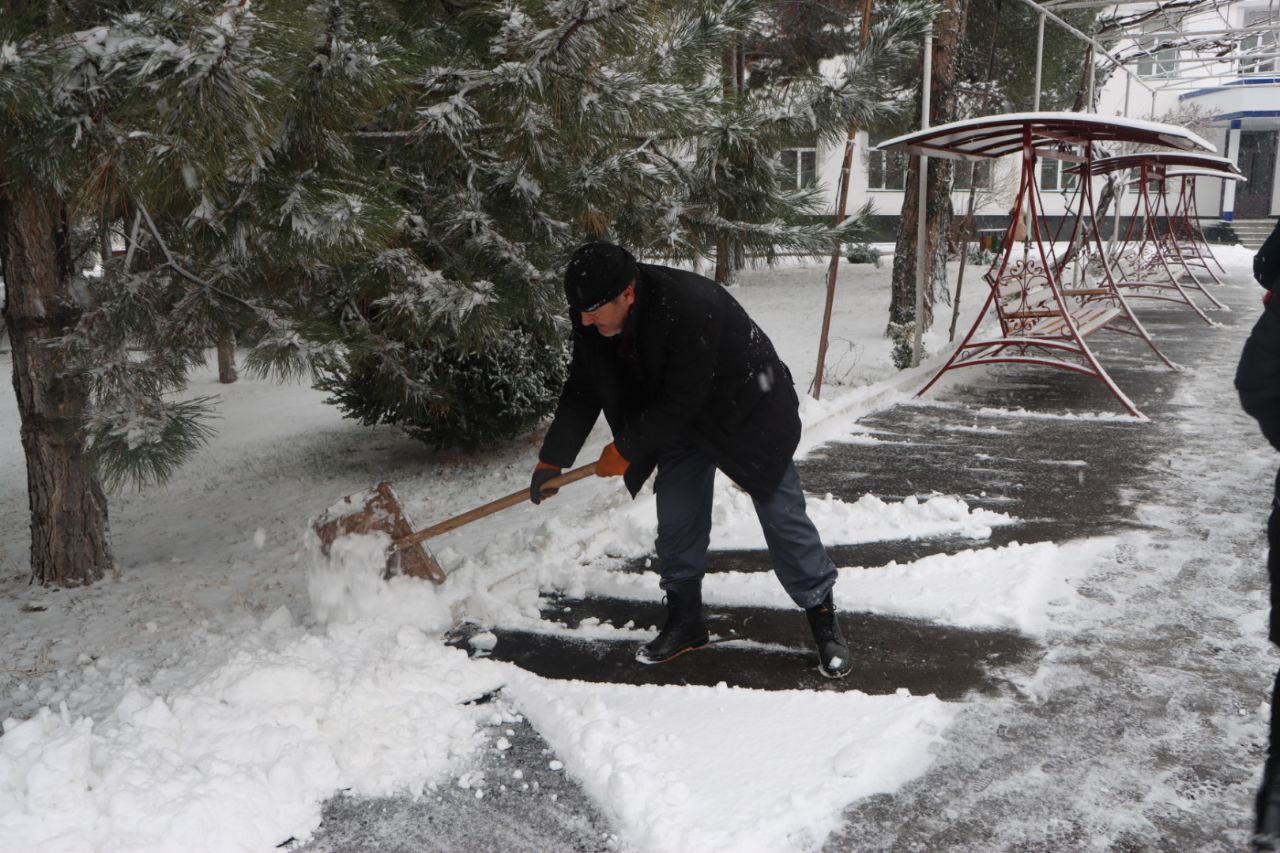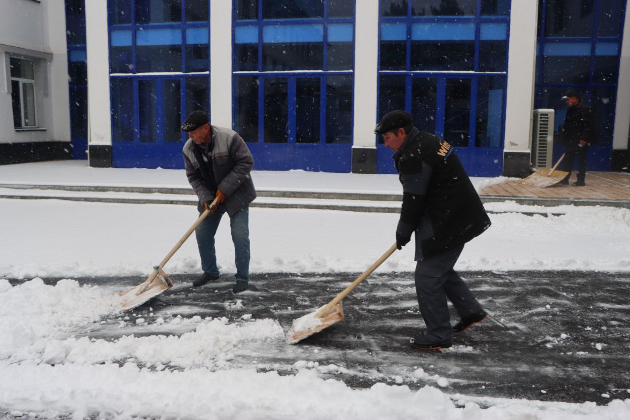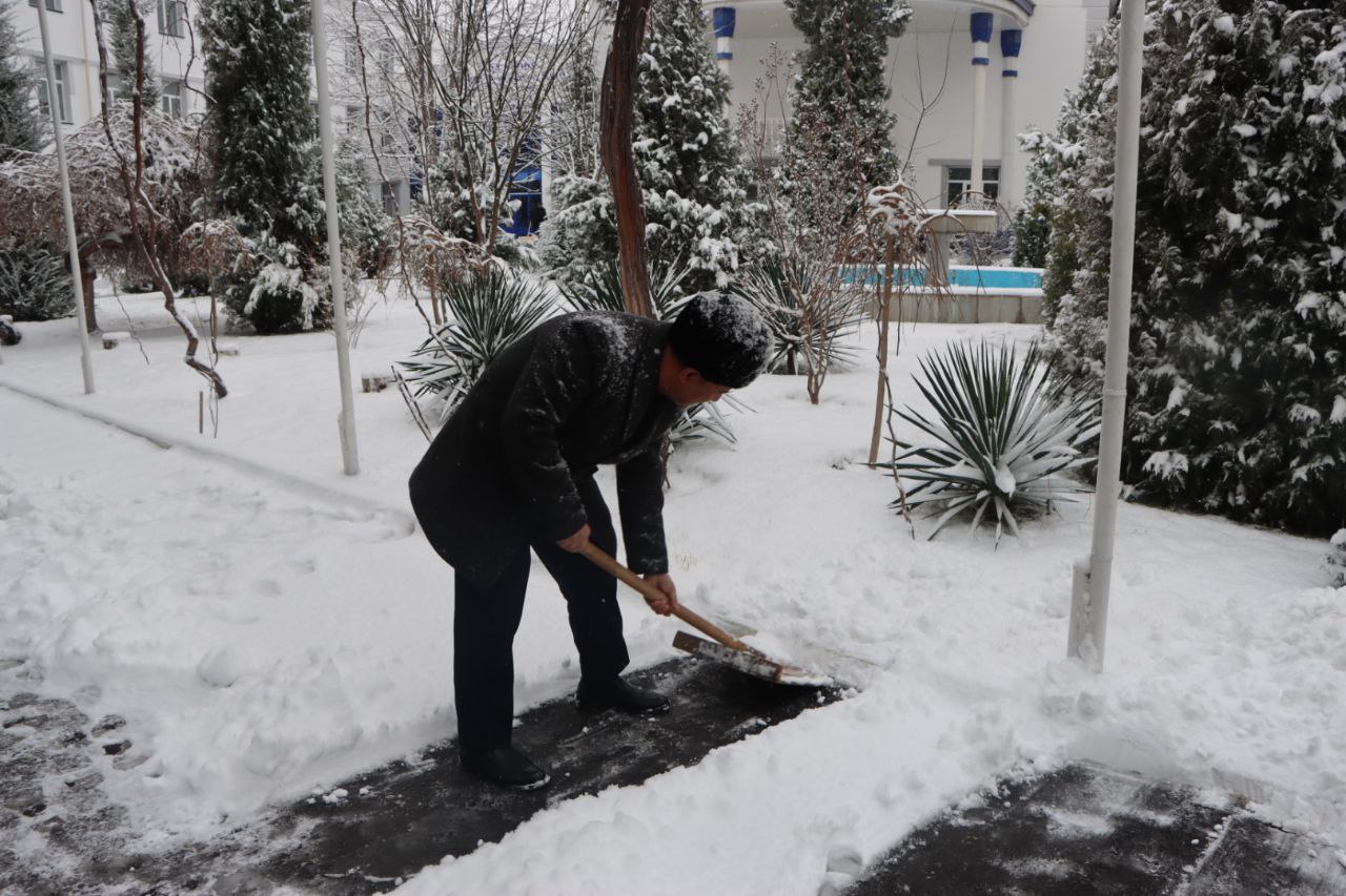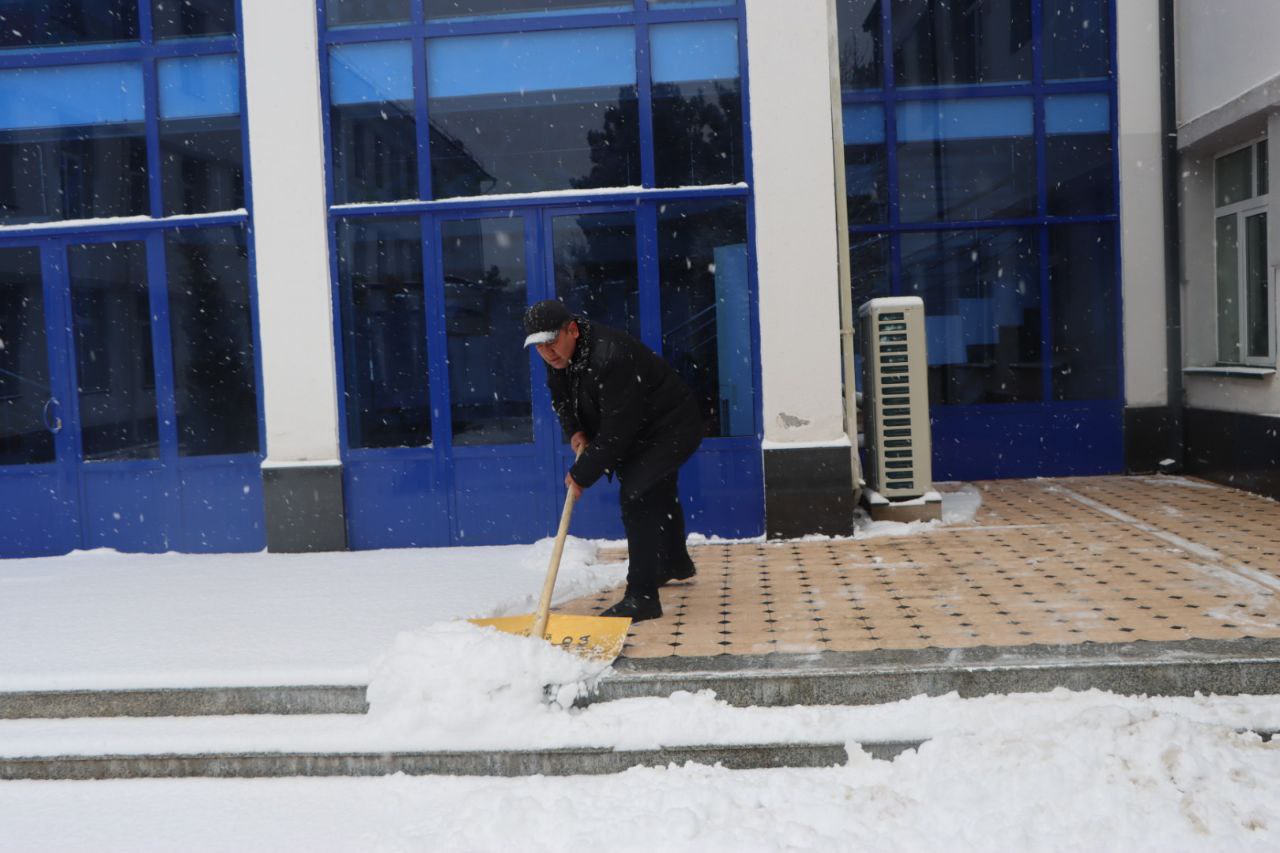 Samarqand viloyati Pedagogik mahorat markazi hududida qish faslining oppoq manzarasi hukm surmoqda. Qor yog‘ishi bilan bog‘liq noqulayliklarning oldini olish maqsadida markaz direktori Anvar Sobirov tashabbusi bilan xo‘jalik xodimlari tomonidan hududni tozalash ishlari tizimli ravishda olib borilmoqda.