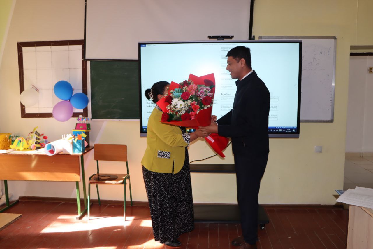 Samarqand viloyati Pedagogik mahorat markazi direktori o‘rinbosari Sarvar Murodov o‘zining birinchi ustoziga samimiy hurmat va minnatdorchilik ramzi sifatida guldasta sovg‘a qildi. Bu mehribon harakat ustozlarga bo‘lgan ehtiromni yanada mustahkamlashga xizmat qiladi.