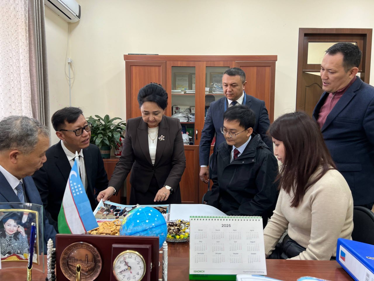 Delegatsiya tarkibida professor, doktor Hu Guoyong – direktor o‘rinbosari, professor Jiexin Lyu – loyiha menejeri, doktor Ruimiao Li – loyiha menejeri hamda xonim Olga Xrebtovskaya – doktorant ishtirok etdilar.